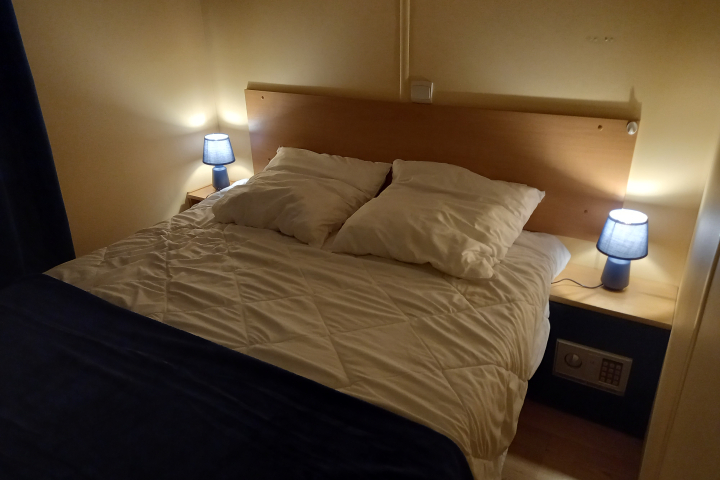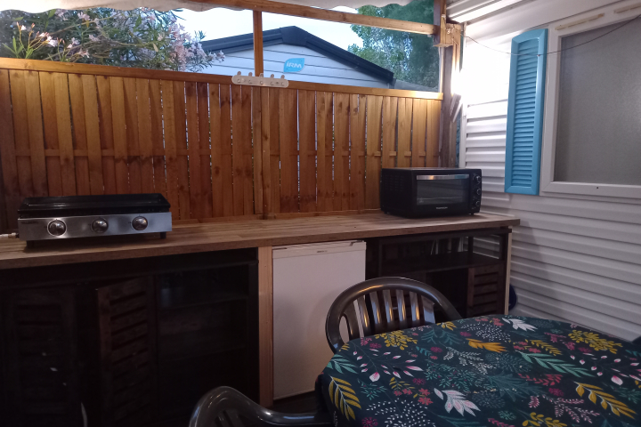 Mobile home located in the campsite l'Escale, quiet and family near the beach of La Tamarissière, natural areaBetween Agde, Grau d'Agde and ViasWith 2 bedrooms including a double bed and two single bedsA dining area with a daybedAn indoor kitchenA shower room1 separate toiletAn outdoor terraceA small pallet room